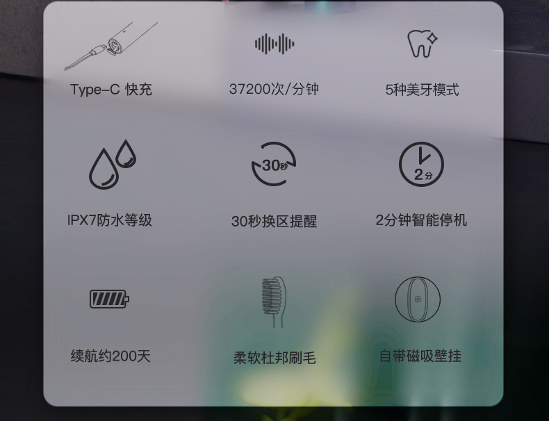 1、五大清潔模式智能設計,一鍵切換五檔模式,讓你享受不同潔齒功能