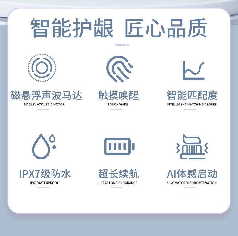 聲波口潔力新一代電動牙刷–刷博士【聲波感應智能電動牙刷】是一款新研發創新的感應式聲波電動牙刷,可實現“入口即開,離口即?!?,告別按鍵的感應黑科技。這款【聲波感應電動牙刷】多種刷牙模式且每種模式下均有3檔力度調節,可滿足不同口腔需求;USB直充,方便易攜帶,出差旅行收納省心;iPX7級防水全身可水下沖洗,沐浴使用也不怕,隨意浸泡,也滴水不入,給你十足安全感!